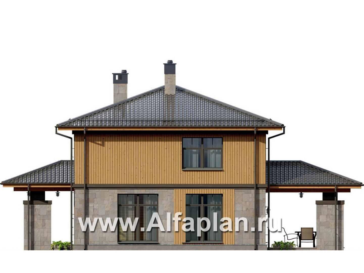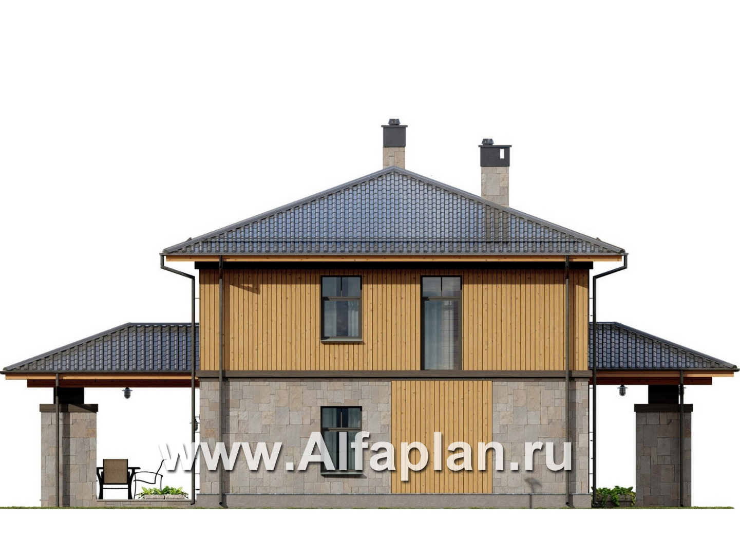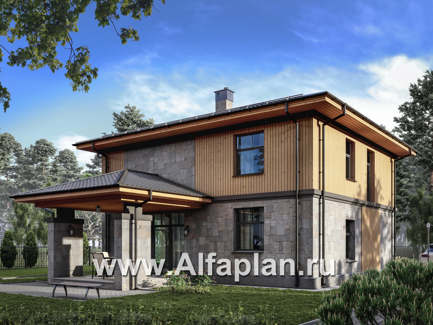 Проект двухэтажного дома, план с гостевой на 1 эт и с террасой, в современном стиле - технические характеристики