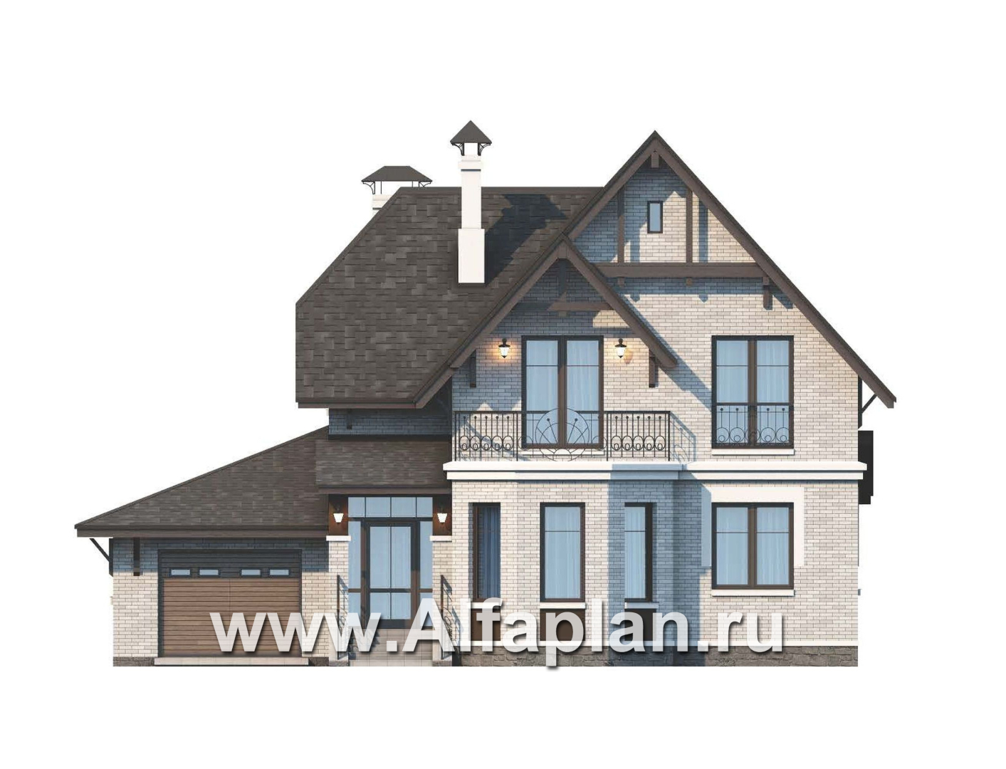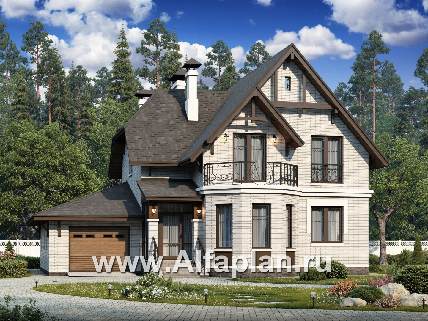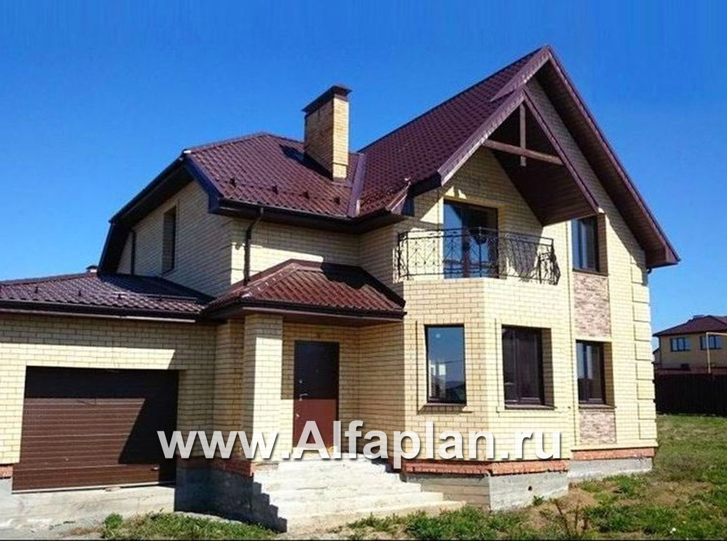 Проект двухэтажного дома из газобетона «Шевалье» с кабинетом на 1 эт, с эркером и гаражом