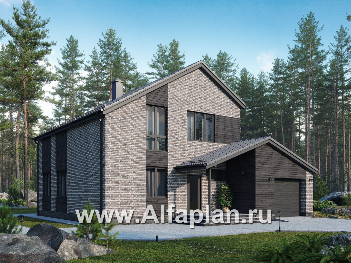 G139 Проект загородного дома из газобетона, с гаражом на 2 авто, в современном стиле