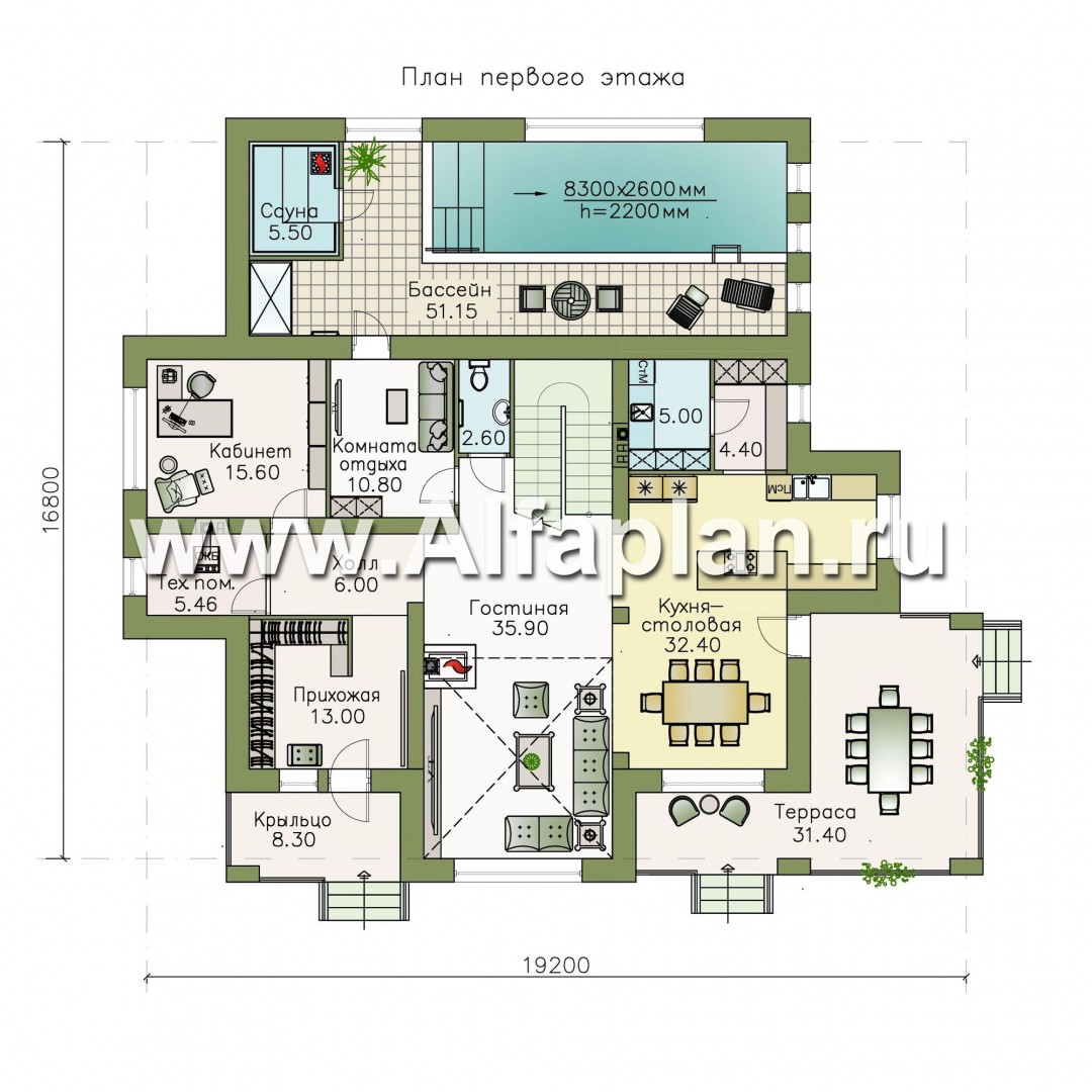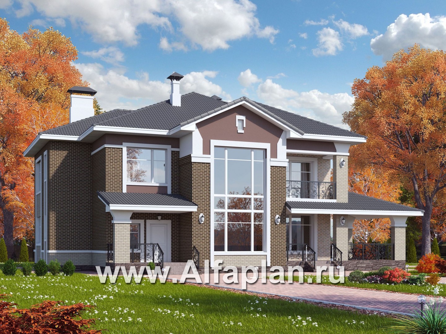 «Арно» - проект двухэтажного дома, особняк с двусветной гостиной, с террасой и сауной, с бассейном