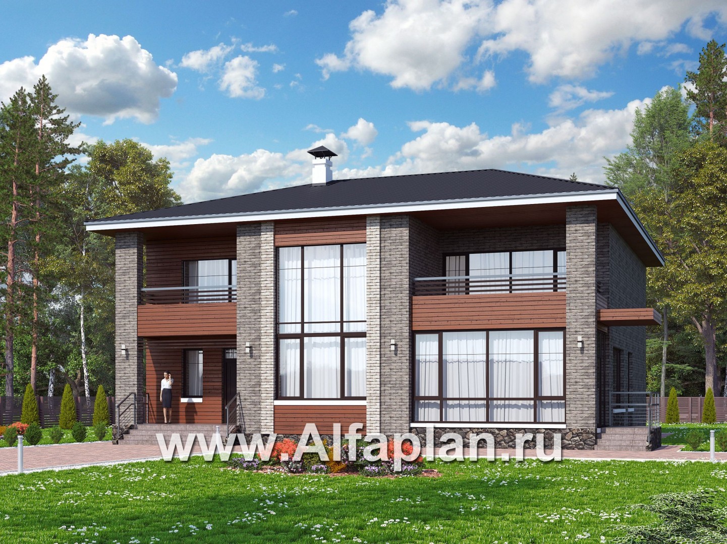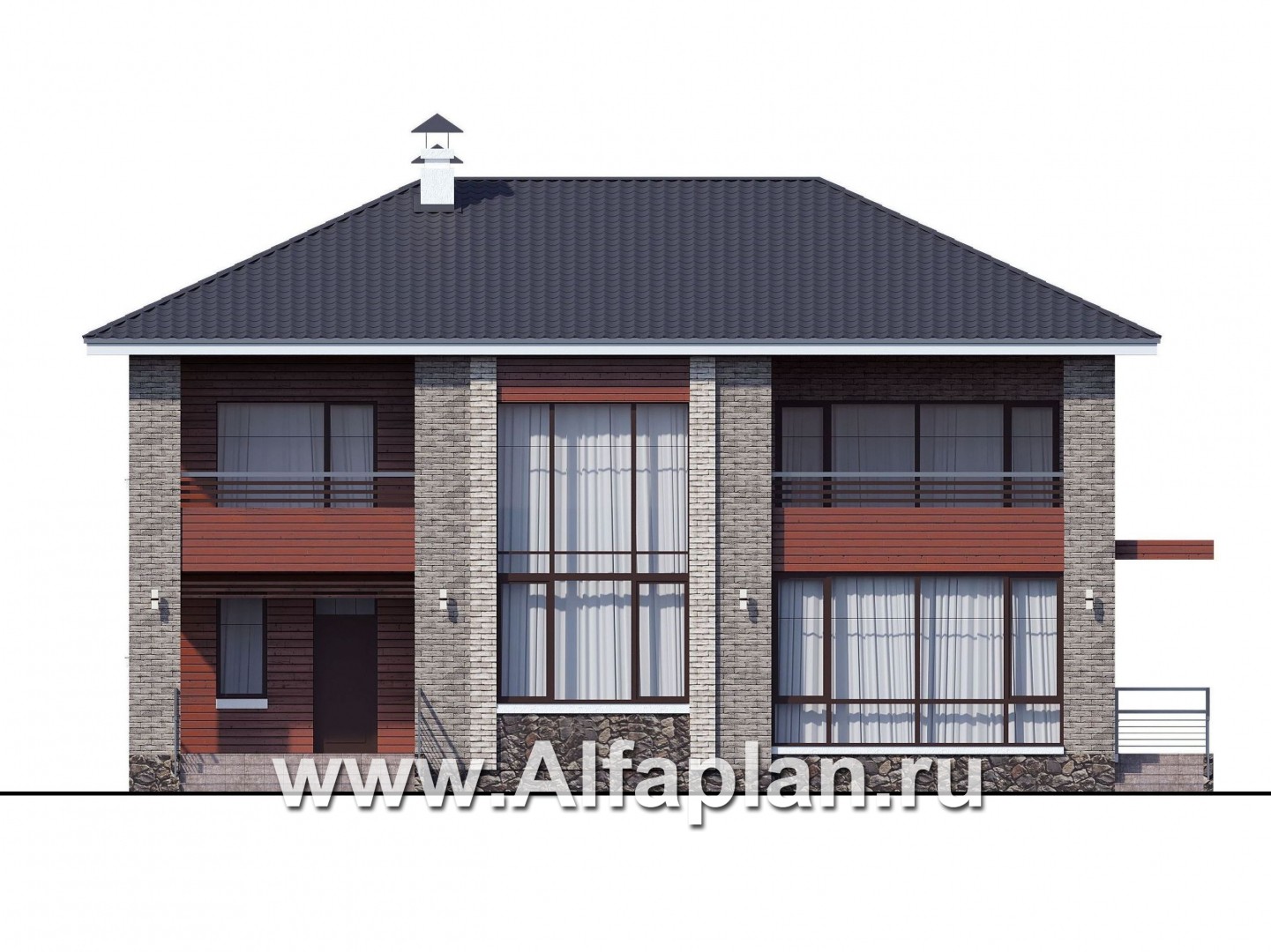 «Семь звезд» - проект двухэтажного дома из кирпича, гостиная со вторым светом, мастер спальня, в современном стиле
