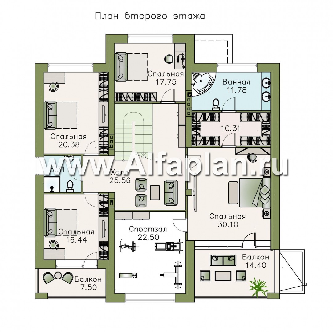 562A-2-S «Семь звезд» - проект двухэтажного дома из кирпича, гостиная со вторым светом, мастер спальня, в современном стиле