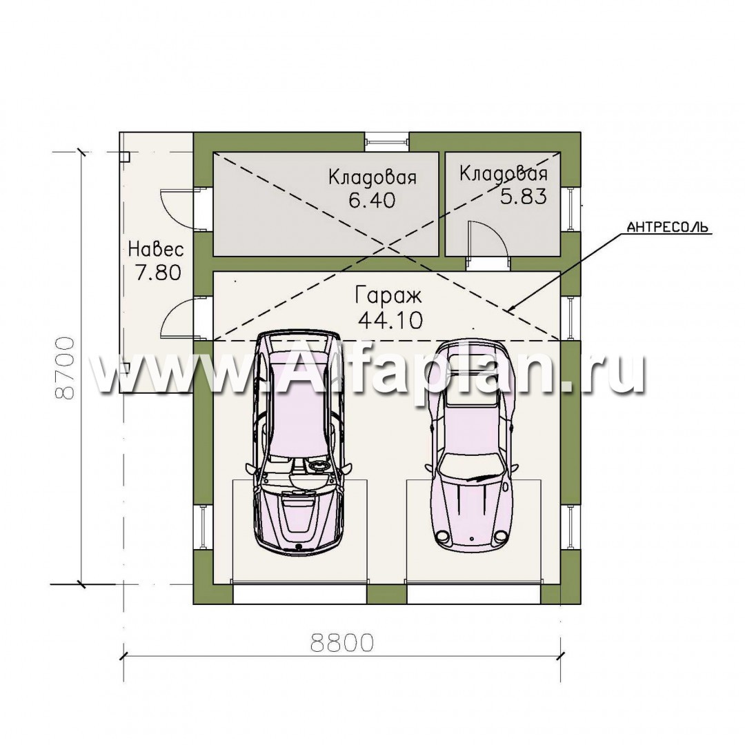 Красивый и удобный гараж на два автомобиля - необходимая постройка на вашем учаске в случае отсутствия встроенного гаража в доме. Кроме непосдственно места для автомобилей в этом гараже предусмотрены две небольшие кладовые. Проект разрабатывался таким образом, что бы гараж стилистически подходил к жилому дому и вместе они представляли единый комплекс на вашем участке. Этот гараж отлично подойдет ко многим готовым проектам нашей коллекции.