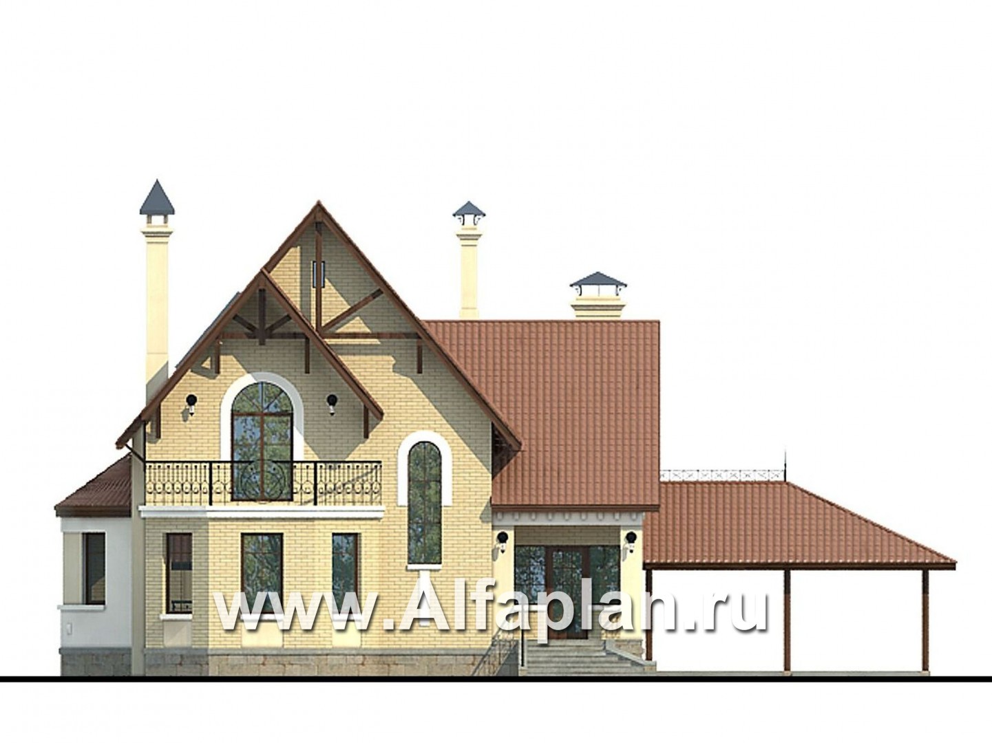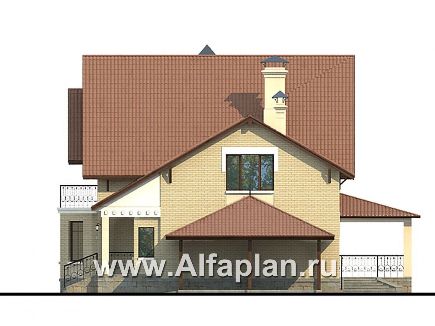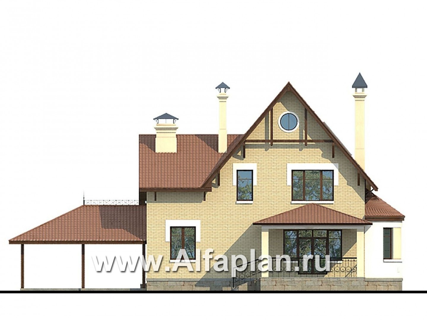356A-S «Золотая середина» - проект коттеджа с жилой мансардой, планировка с сауной, с эркером и навесом для 2 авто