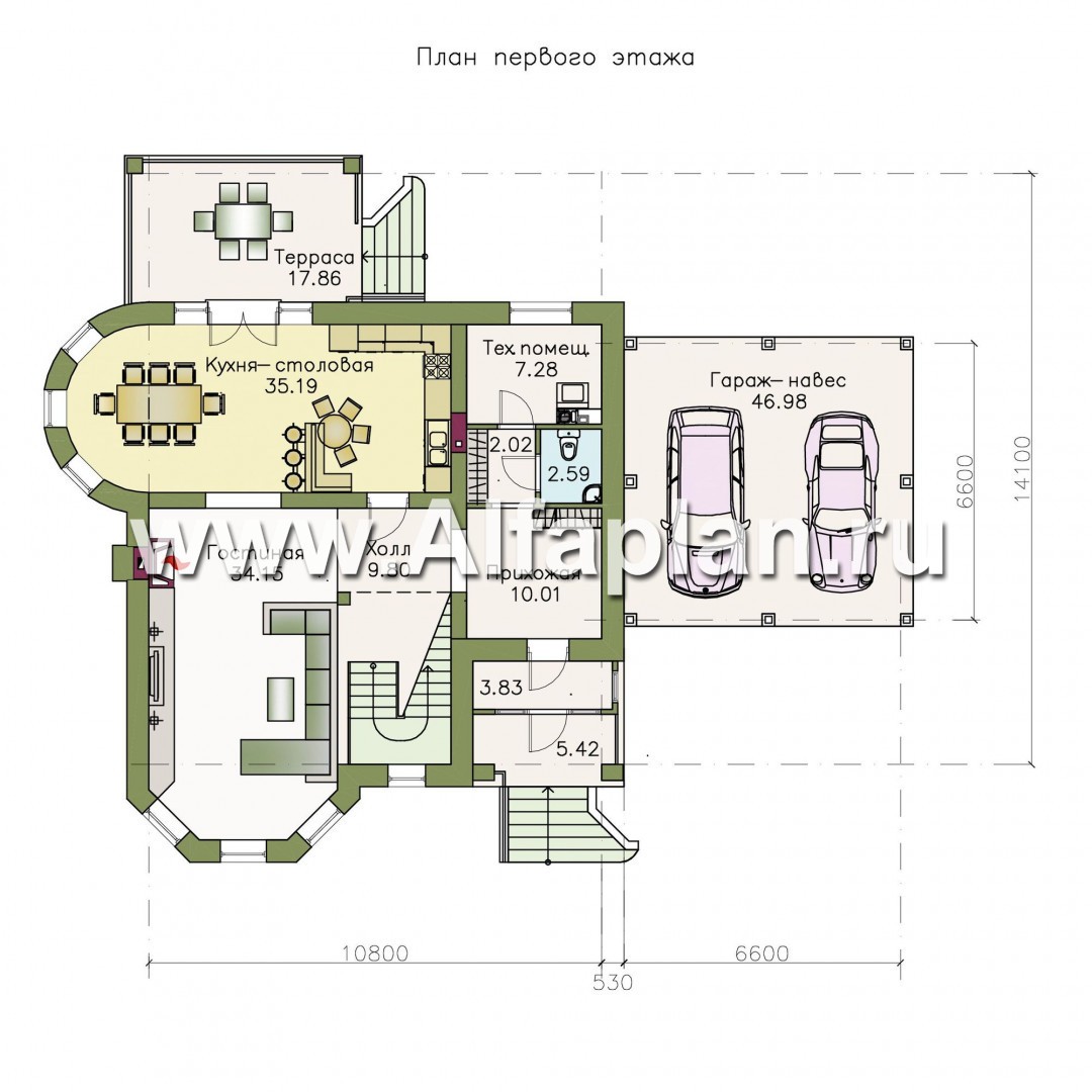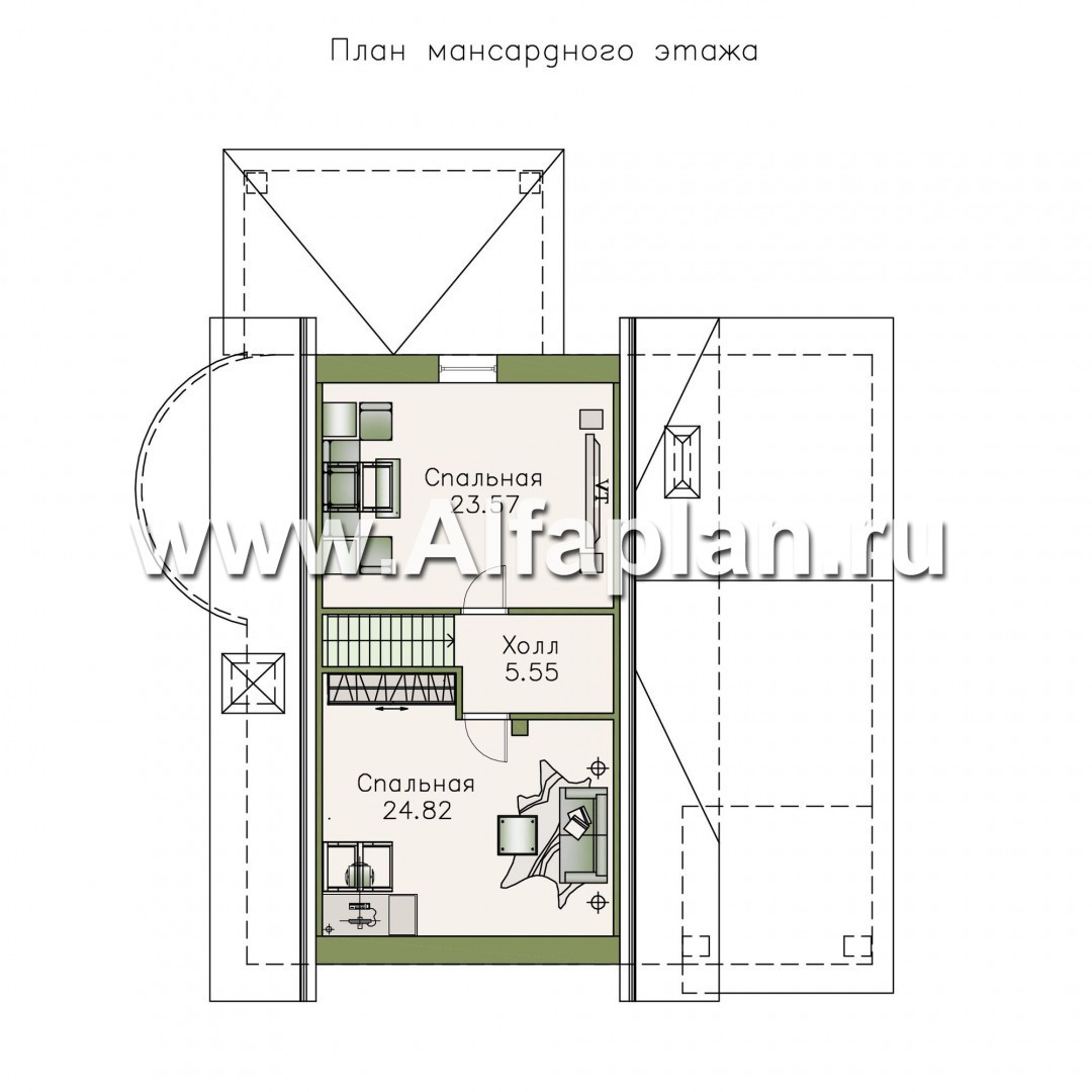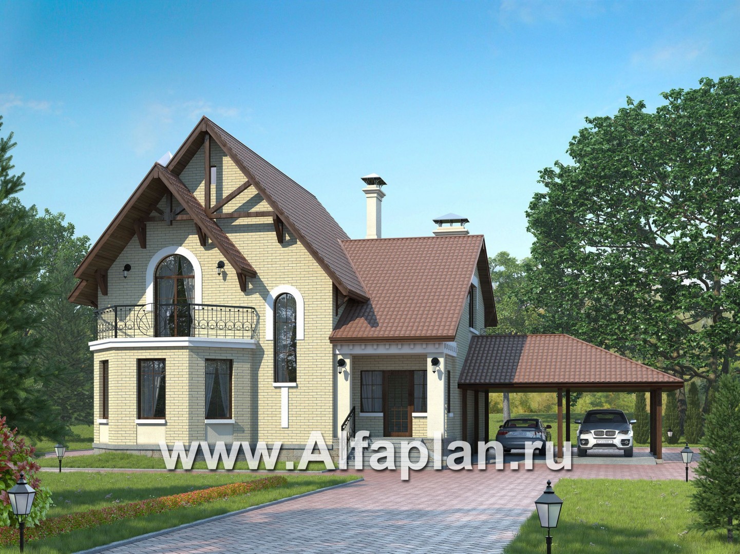 356A-S «Золотая середина» - проект коттеджа с жилой мансардой, планировка с сауной, с эркером и навесом для 2 авто