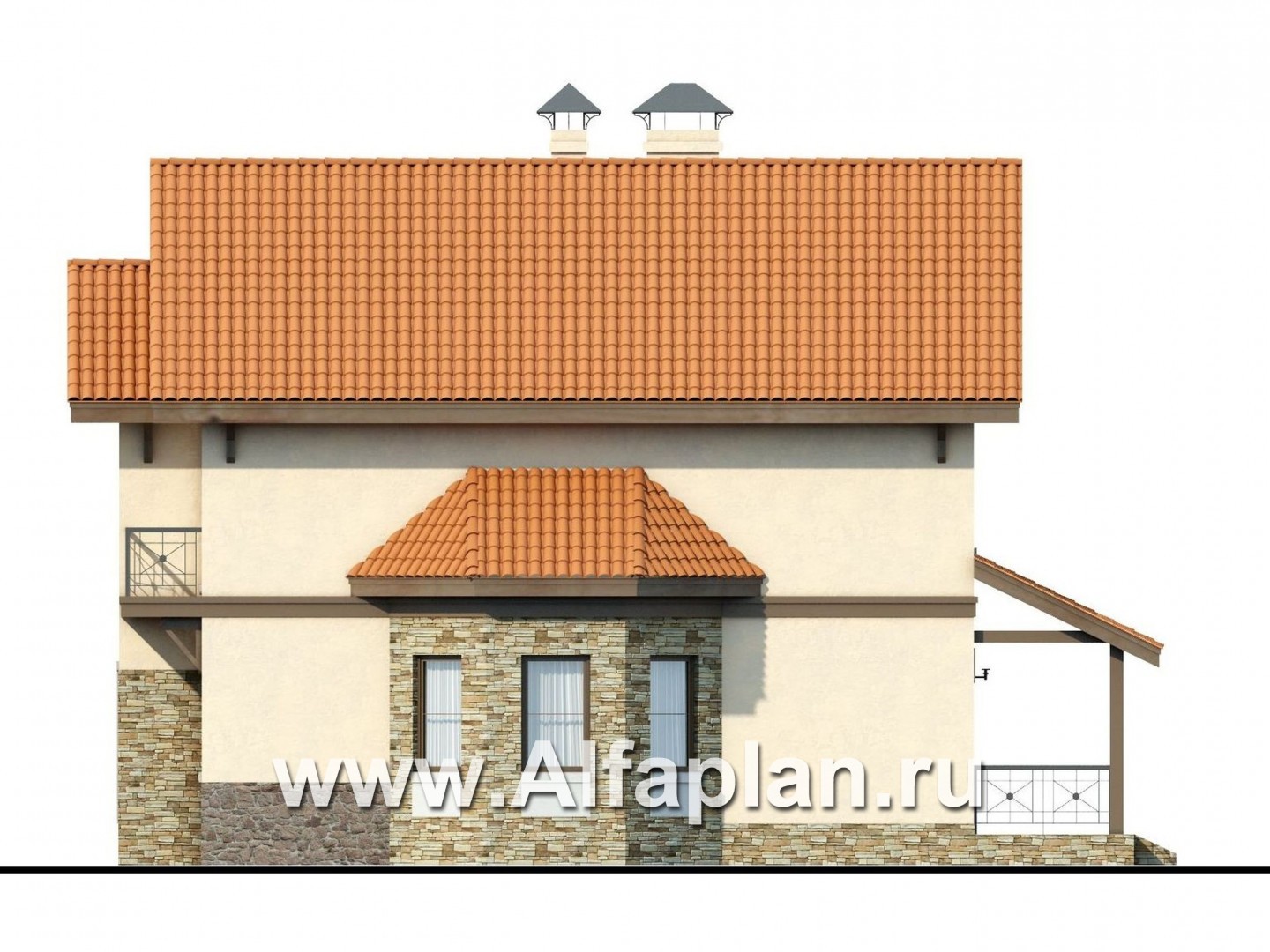 141A-S «Pro vita» - проект двухэтажного дома с эркером, с балконом и с террасой, навес на 1 авто