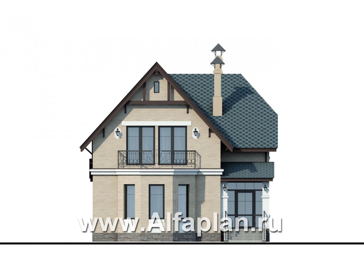 Над балконом можно сделать небольшой навес по типу того, как это сделано в проекте 102А, ссылка: https://www.alfaplan.ru/catalog/item_2040/