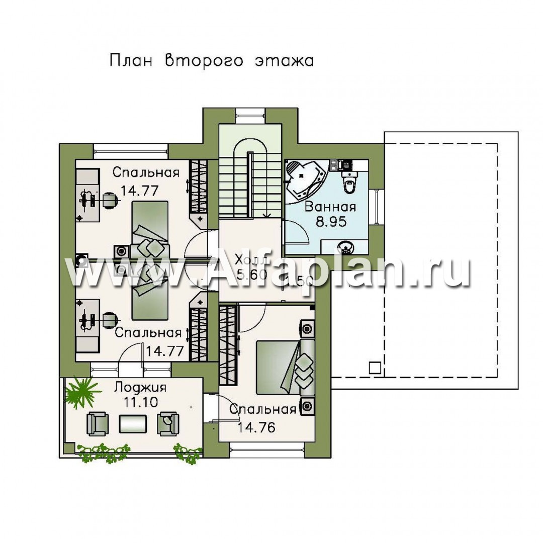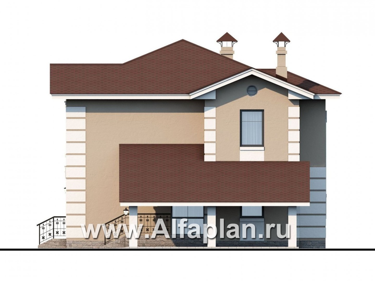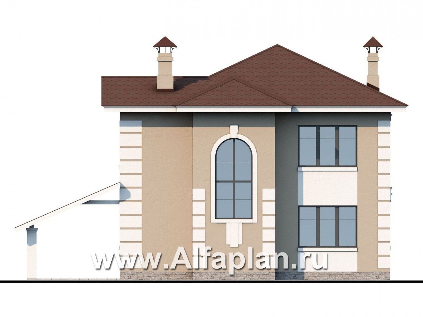 «Знаменка» - проект двухэтажного дома из газобетона, планировка с эркером и с террасой, с навесом на 1 авто