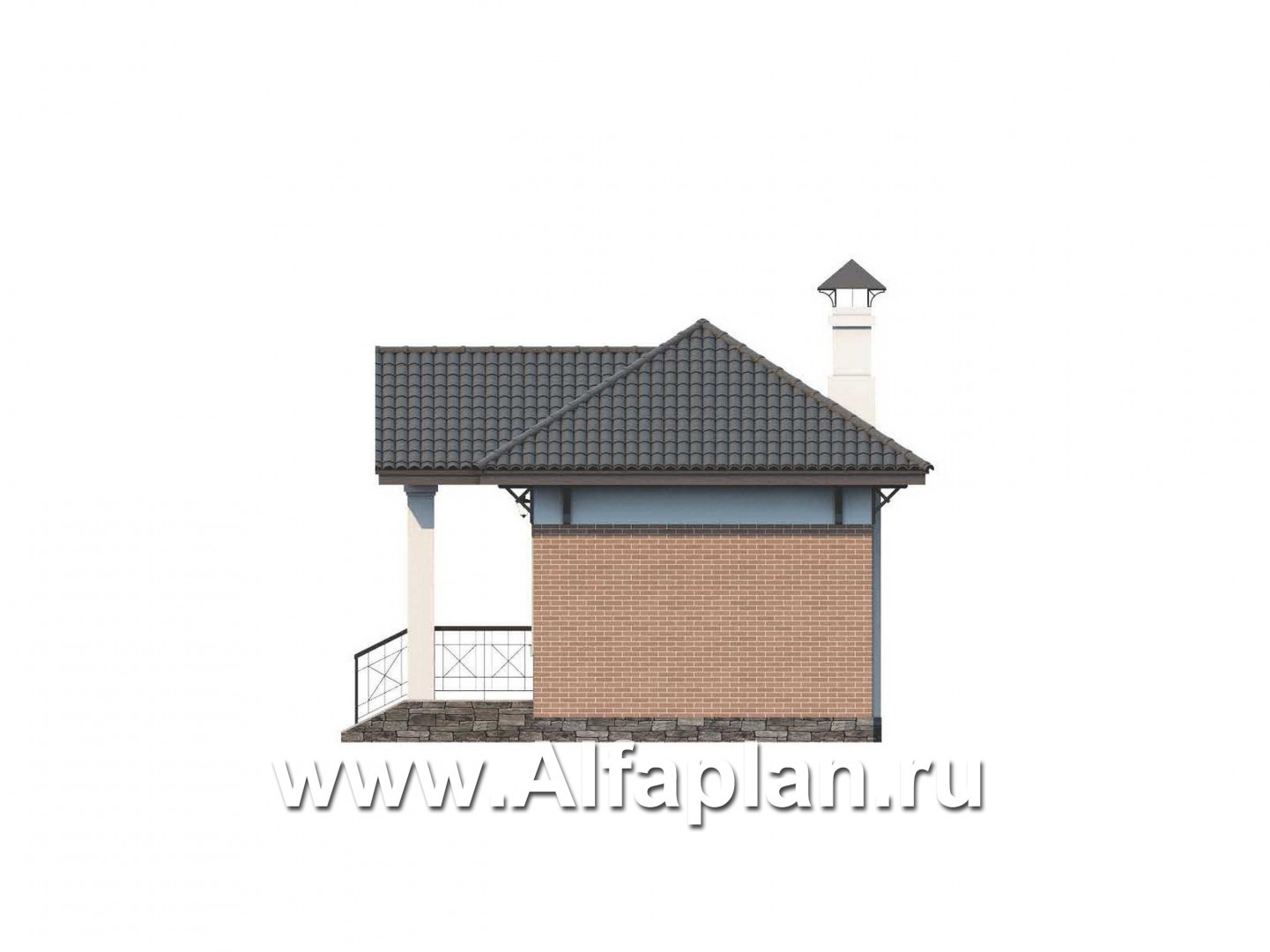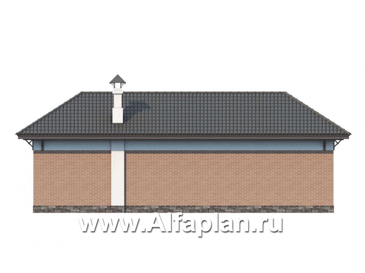 Не будет противоречить упомянутым концепциям сдержанная цветовая гамма, выбранная для оформления фасада этого пено-, газобетонного дома. С песочным оттенком лицевого кирпича гармонирует свинцово-серая натуральная или битумная черепица, предложенная автором проекта для оформления кровли.