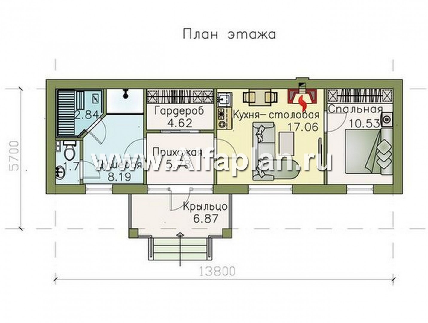 • Общая площадь дома:54.16 м²