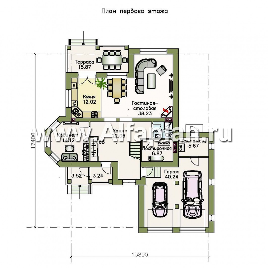 «Маленький принц»-проект двухэтажного дома, с эркером и с террасой, планировка с кабинетом на 1 эт, с террасой над гаражом