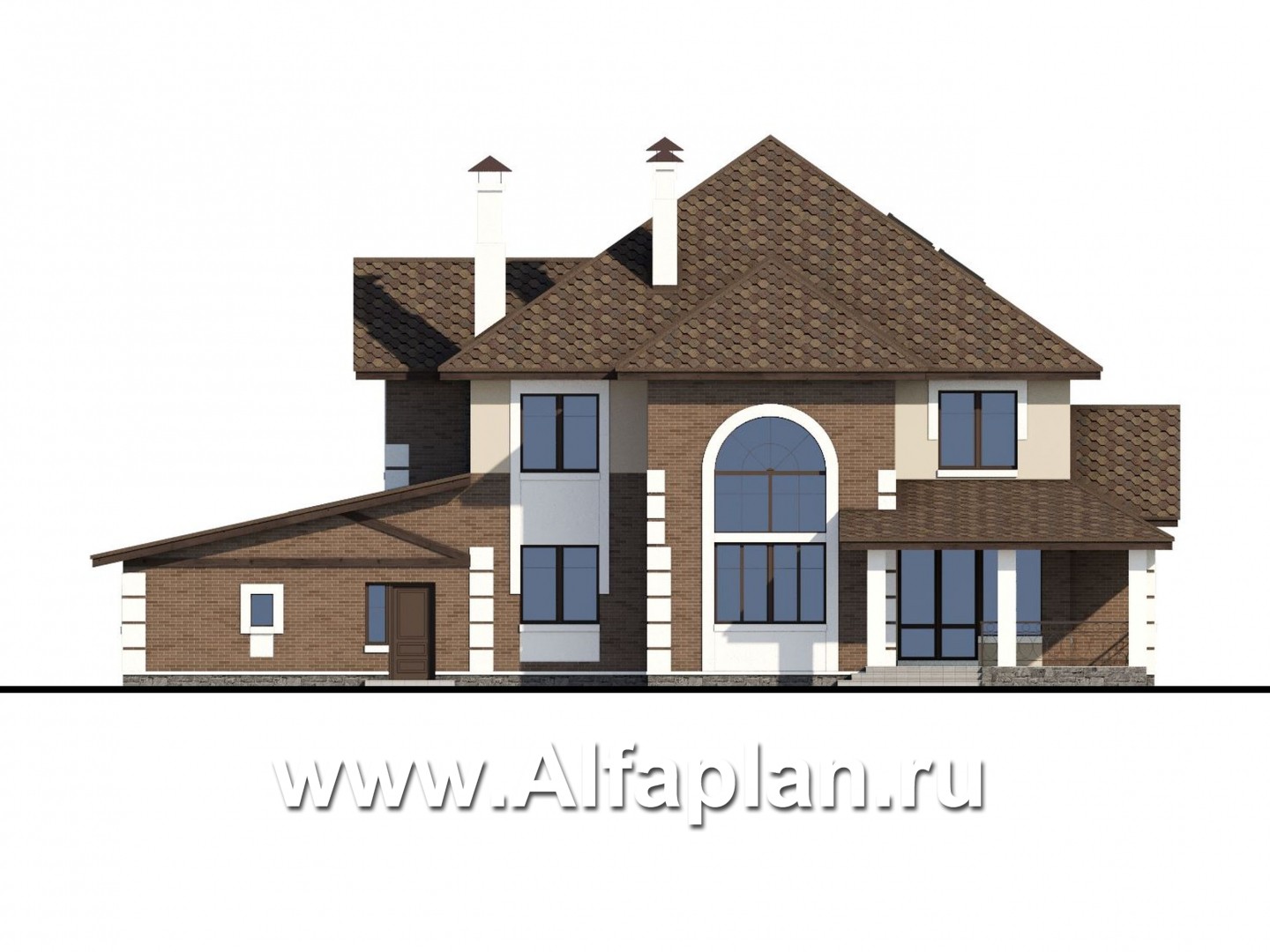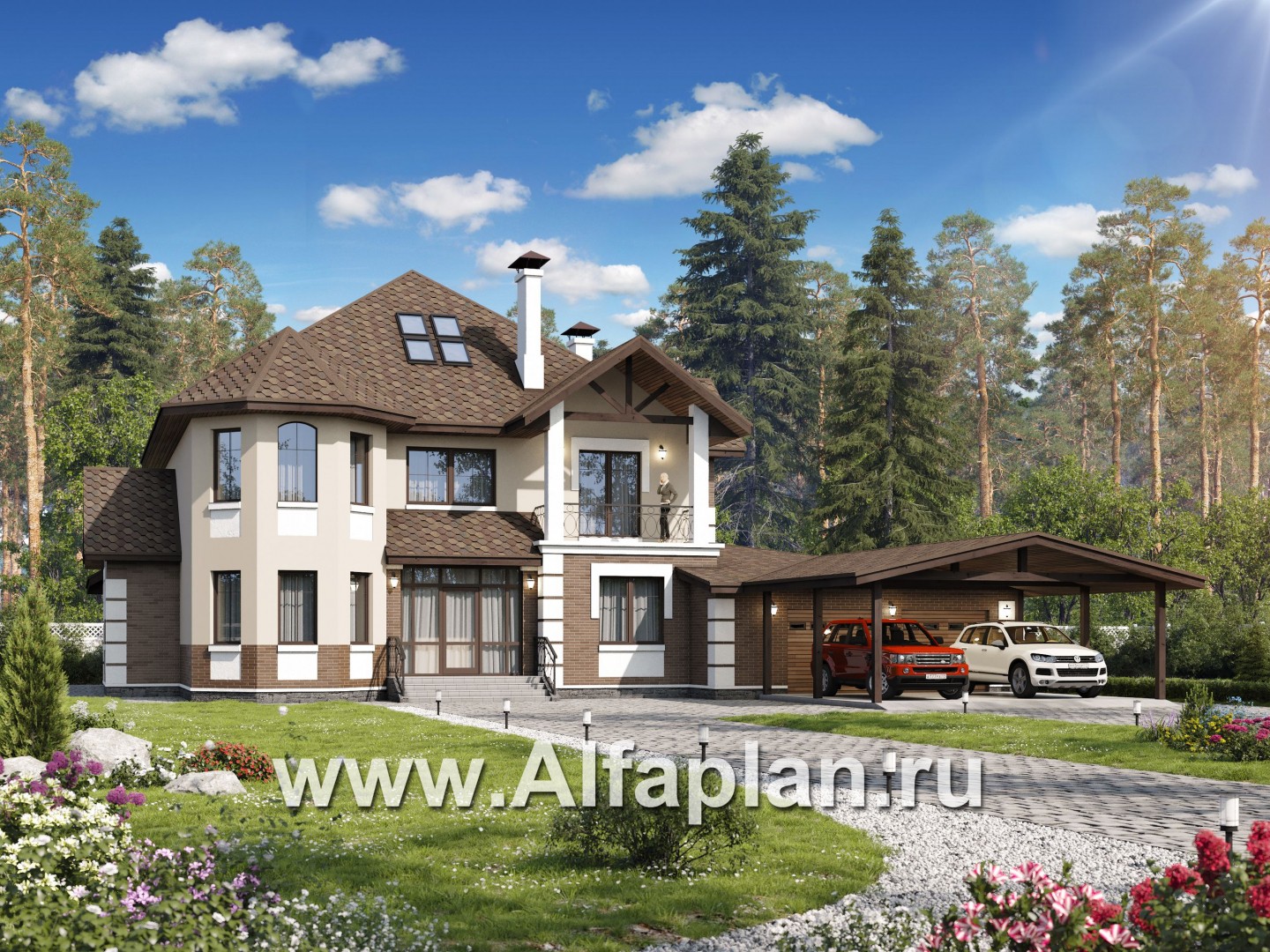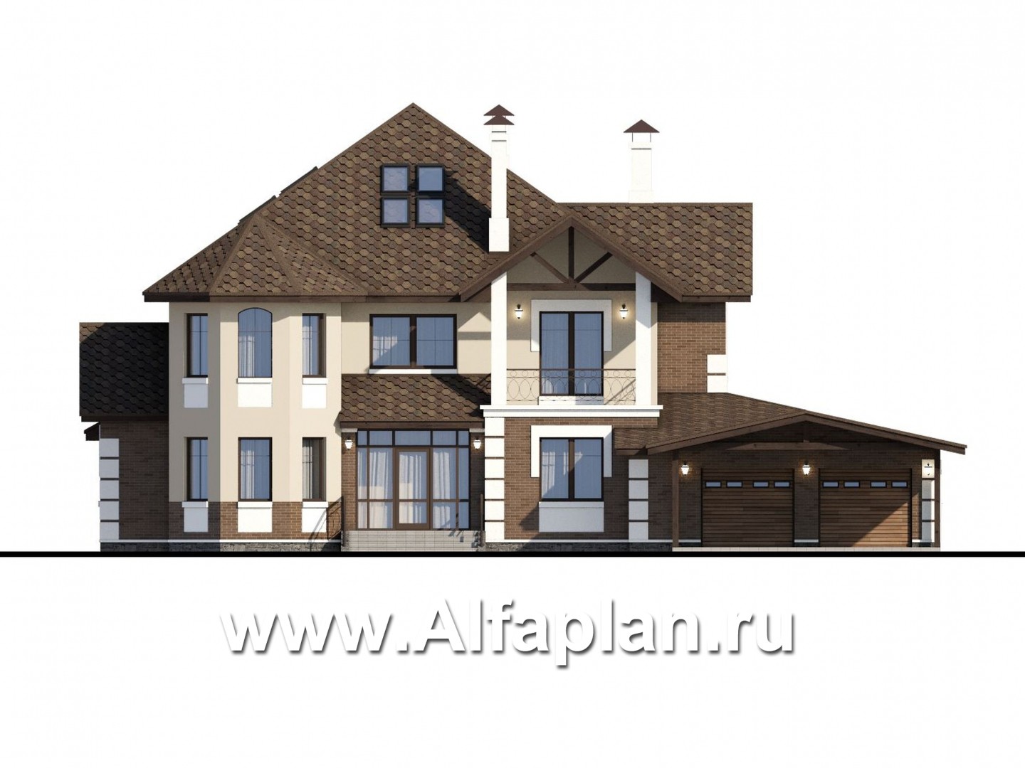 «Воронцов» - проект двухэтажного дома из газобетона с эркером, с биллиардной, с гаражом и навесом на 4 авто