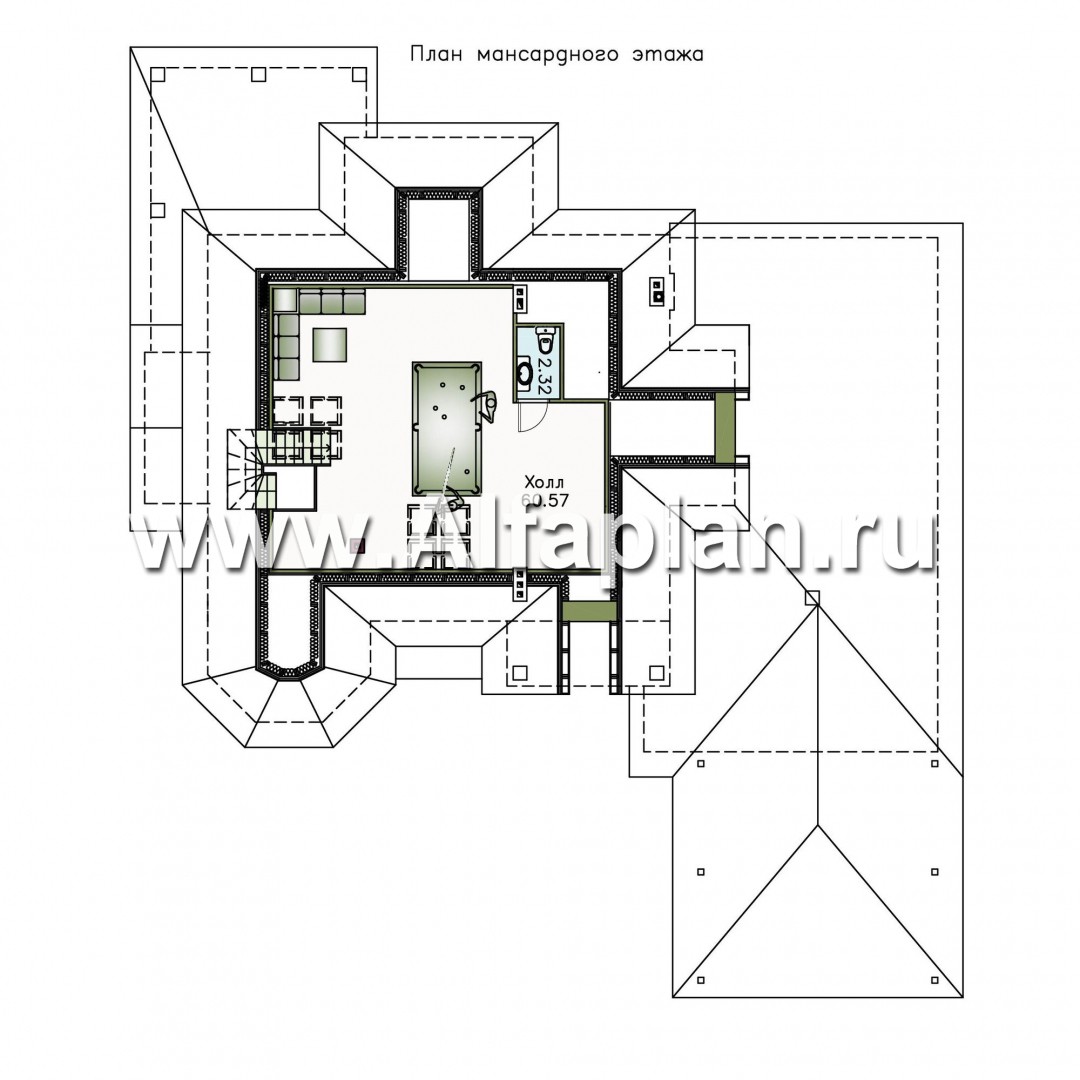 Площадь мансарды 62.89 м²