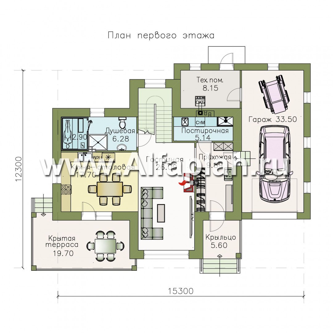 «Модерн» - проект двухэтажного дома из газобетона, с террасой и с гаражом, в стиле модерн (Серебряный век)