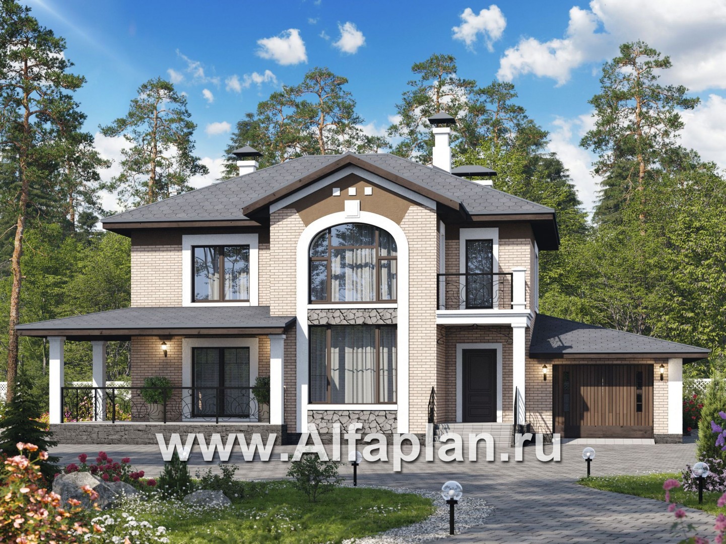 376B-S «Модерн» - проект двухэтажного дома из газобетона, с террасой и с гаражом, в стиле модерн (Серебряный век)