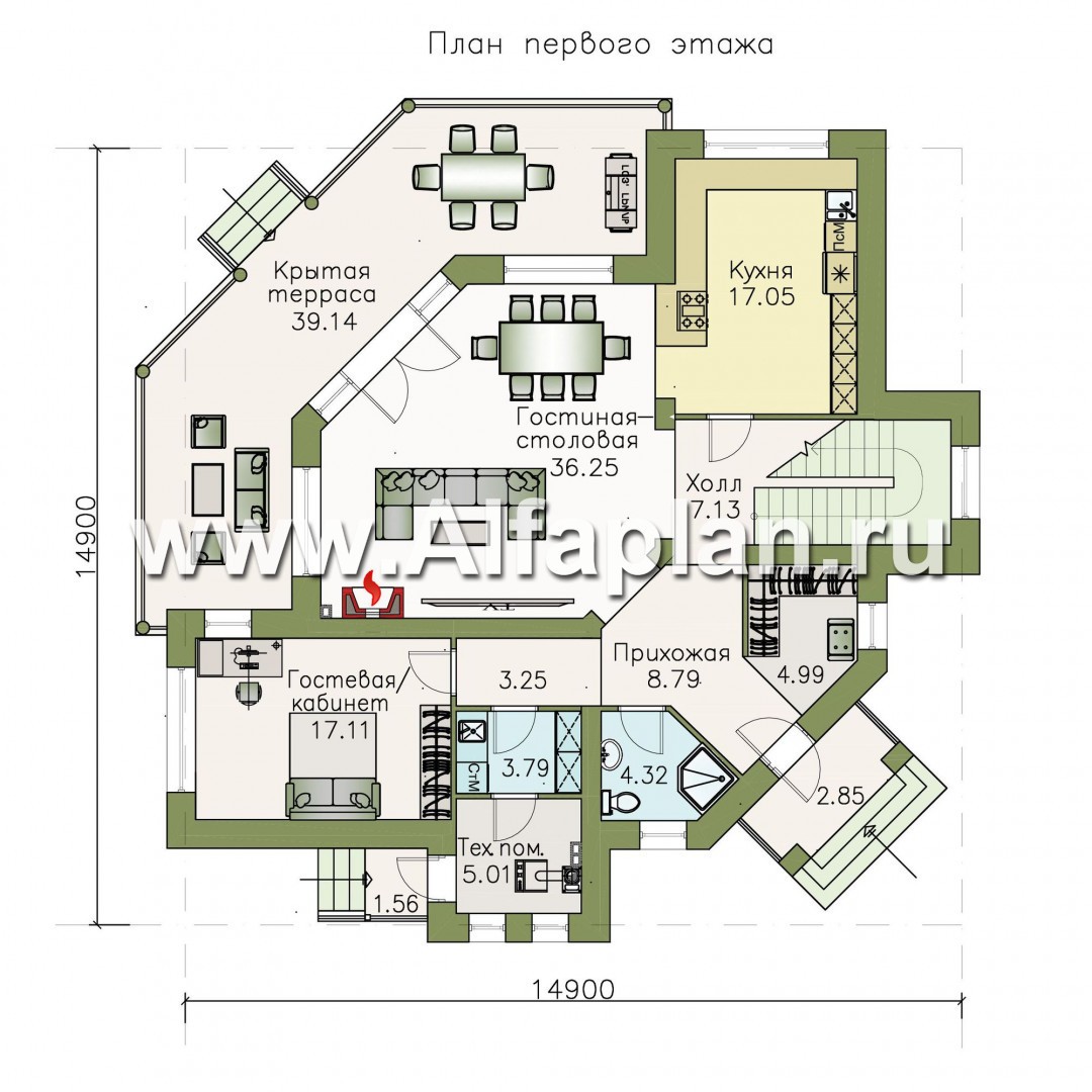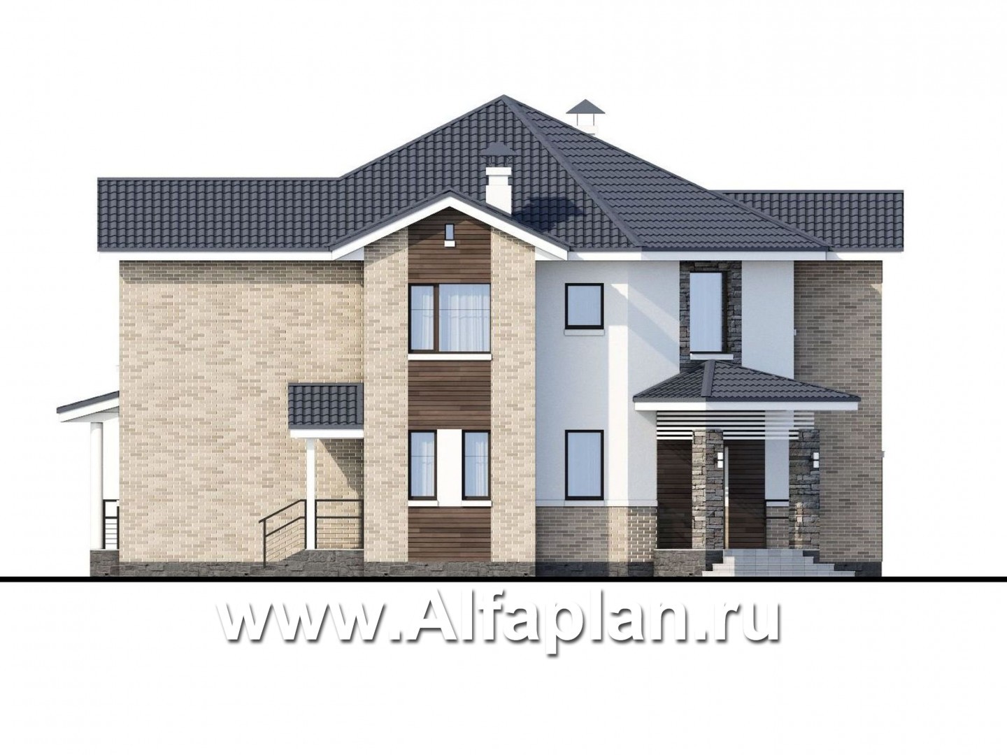 360A-S «Махаон» - проект красивого двухэтажного дома, с диагональным построением плана, с террасой