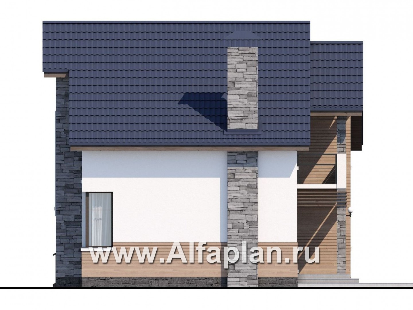535A «Валаам» - проект современного дома с мансардой, с угловым остеклением гостиной, в стиле шале