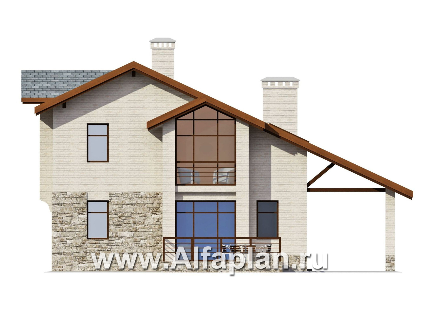 Со стороны навеса расположен вход в котельную. Это единственное служебное помещение, поскольку подвал в доме не запланирован. И замена теплого гаража навесом, и отсутствующий подвал призваны максимально снизить стоимость постройки.