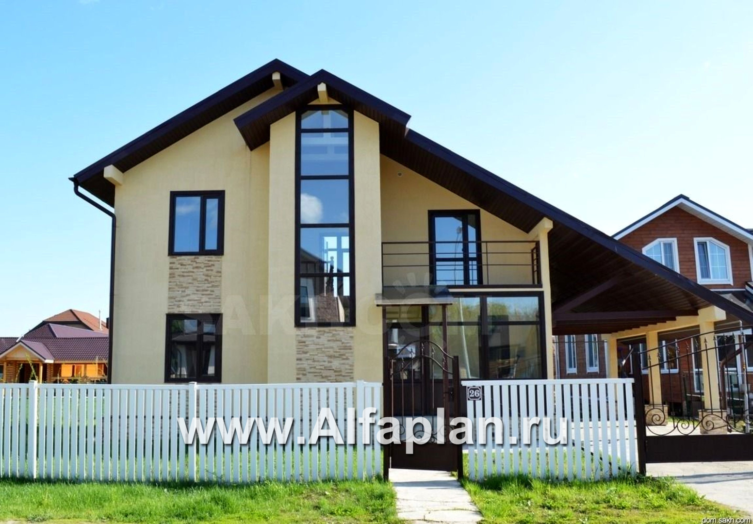 Главное, что напоминает о шале в этом доме из поризованных керамических блоков, – конечно, очертаниякровли. Двухскатная, асимметричная, массивная, с увеличенными карнизными свесами, она создает ощущение лаконичности, характерное для этого архитектурного стиля. Не противоречит общей концепции и использование в декоре фасада акрилового камня с нарочито грубой фактурой – как символ возвращения к истокам, к природе.