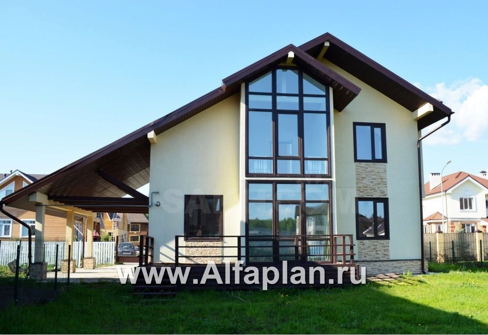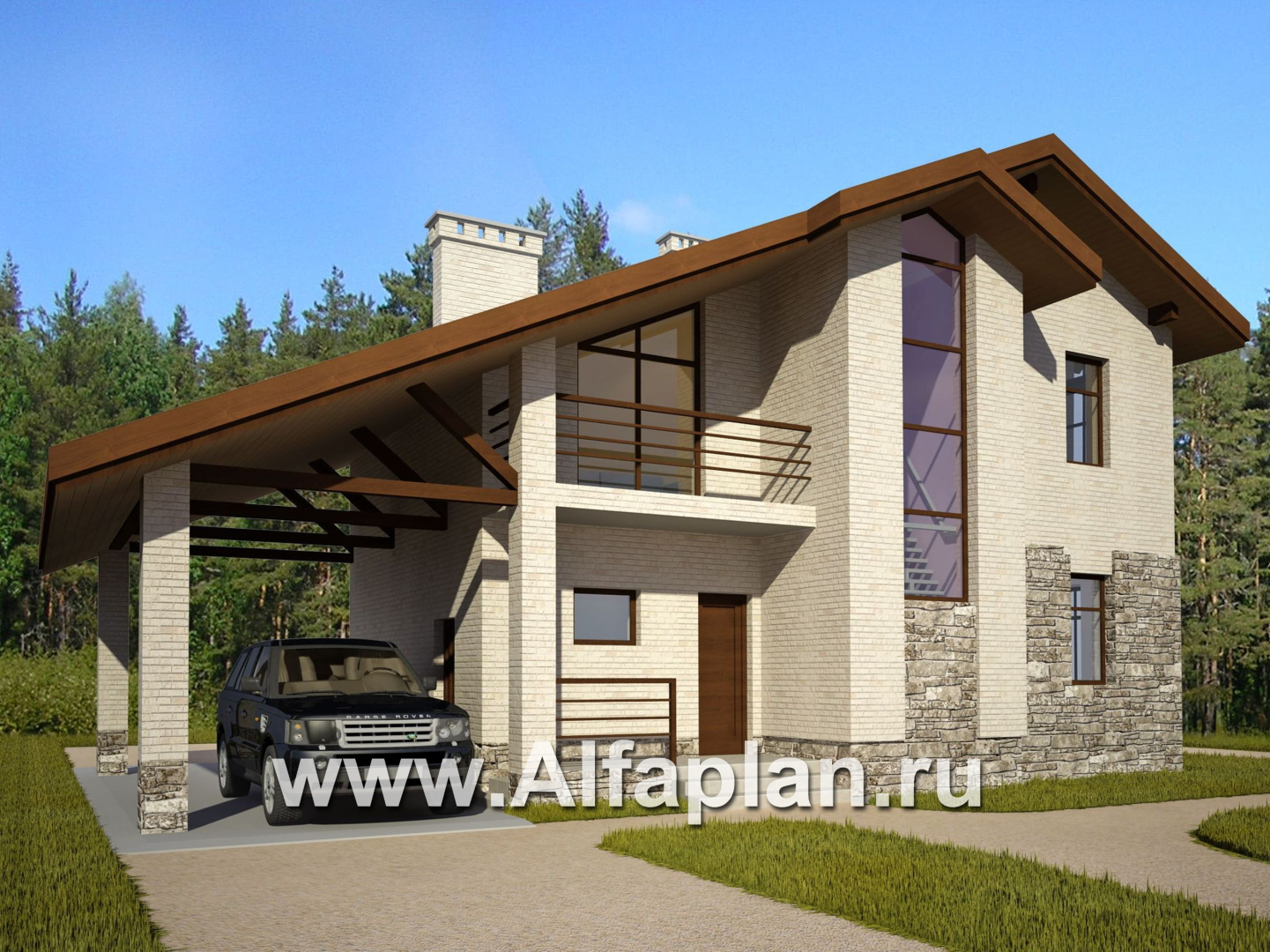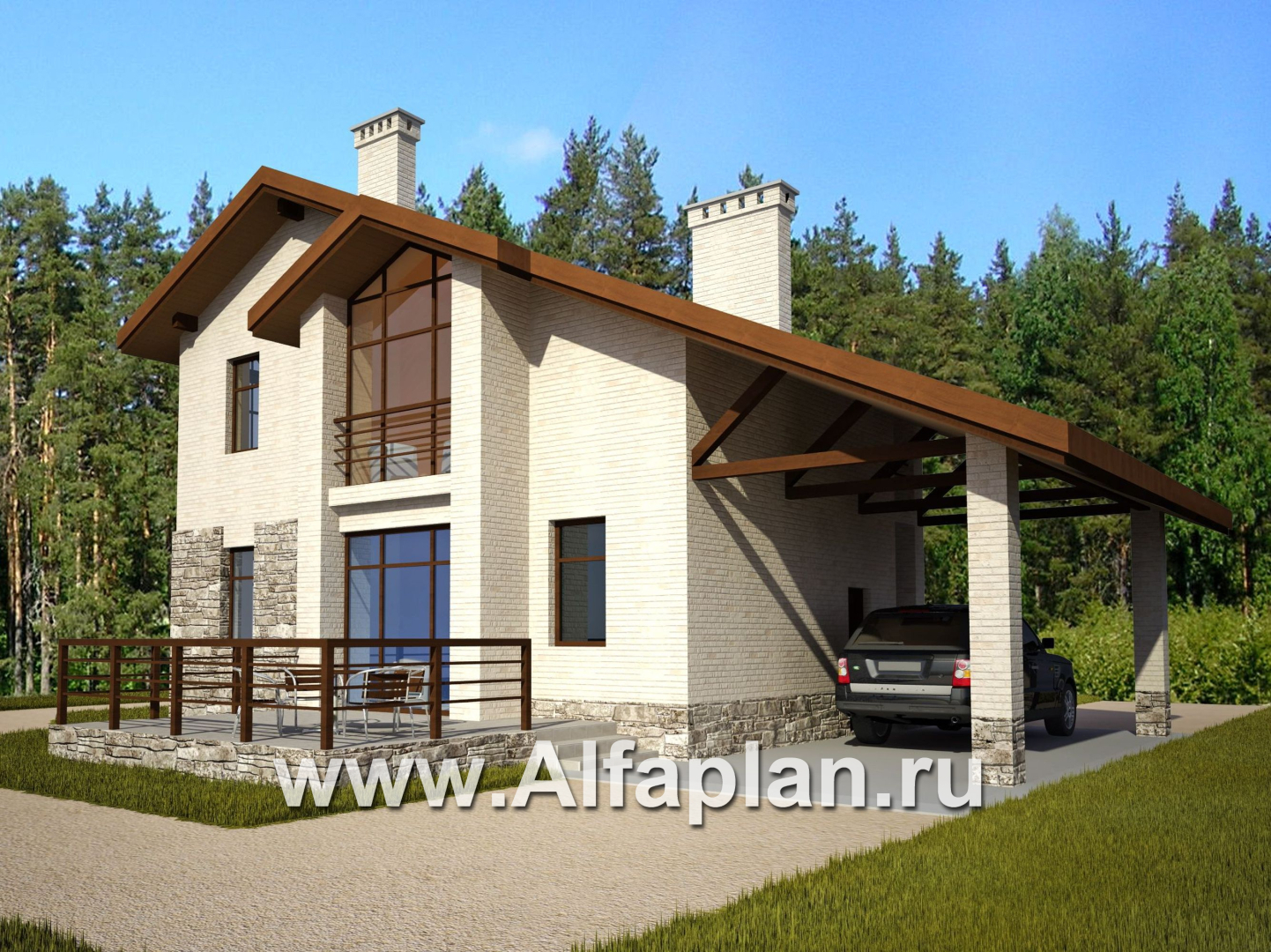 Проектом дома из поризованных керамических блоков предусмотрено еще одно пристроенное помещение: это автомобильный навес, являющийся недорогой альтернативой теплому гаражу.