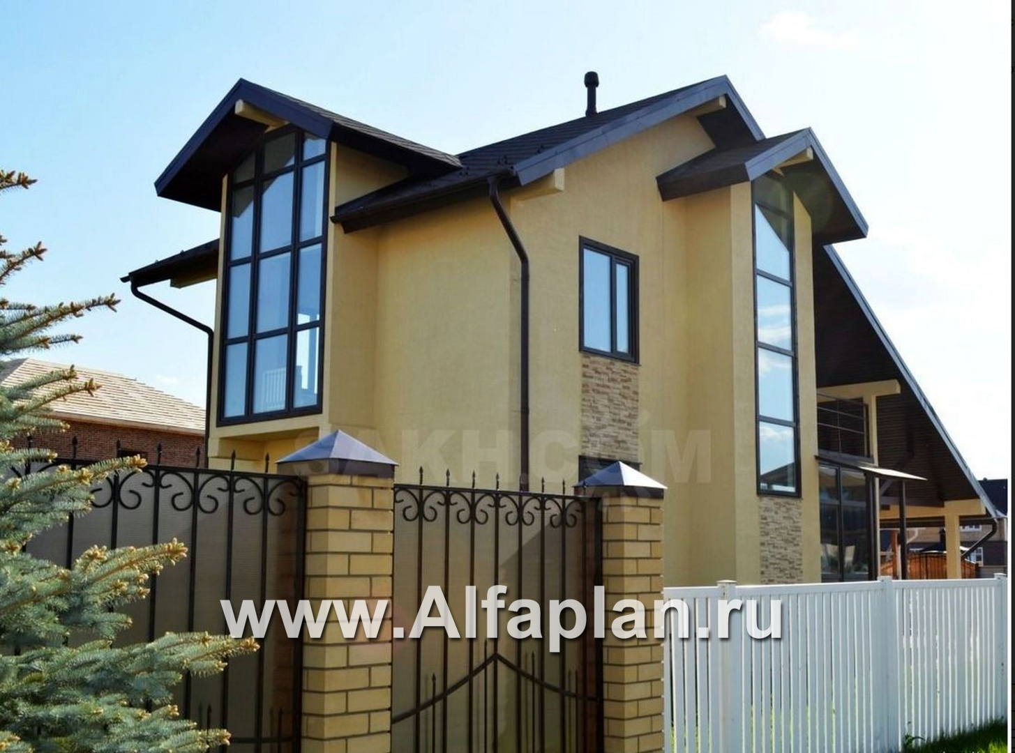 И все же признаки шале, присутствующие в облике этого блочного дома, являются лишь частью стилистического микса. Лаконичность альпийской хижины усилена, даже возведена в абсолют с помощью конструктивистских приемов: особенно обращают на себя внимание подчеркнутая геометричность форм, большое количество остекленных поверхностей и монотонность цветовых решений.