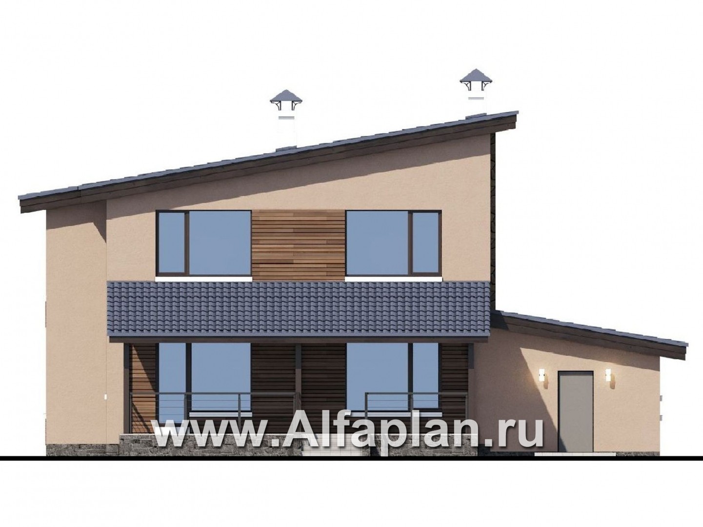 «Борей» - проект двухэтажного дома с террасой и гаражом на 1 авто, планировка с кабинетом на 1 эт, в современном стиле