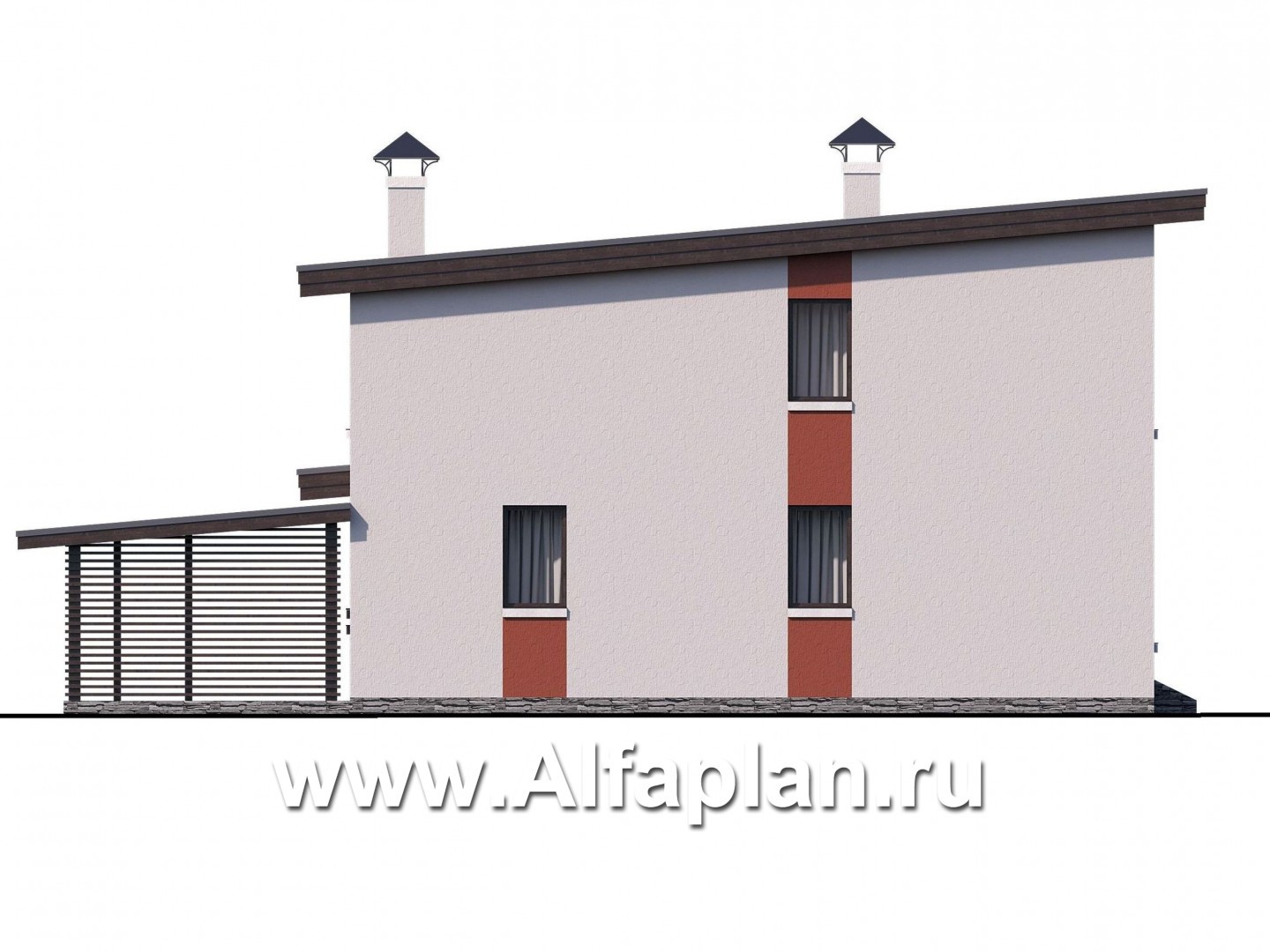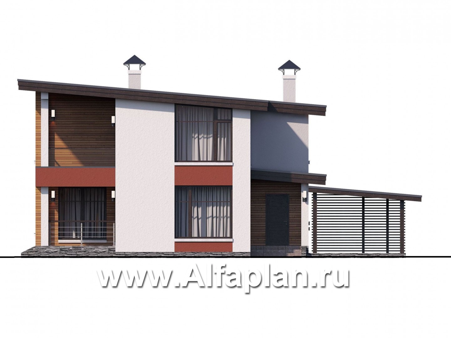 «Фабула» - проект двухэтажного дома с террасой и балконом, с навесом на 1 авто, в скандинавском стиле