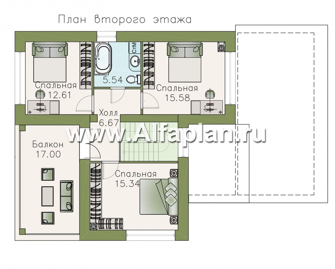 556B-S «Фабула» - проект двухэтажного дома с террасой и балконом, с навесом на 1 авто, в скандинавском стиле