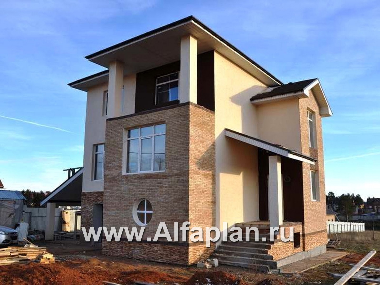 105A Проект трехэтажного дома из газобетона «Аура», с гаражом в цоколе, с сауной и спортзалом, с балконом и круглым окном